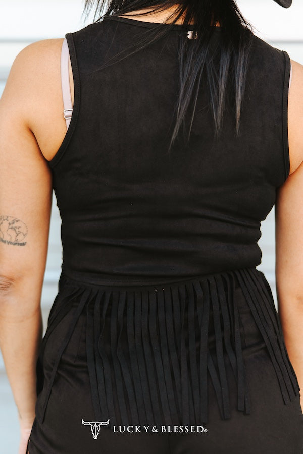 Black Studded Suede Fringe Top