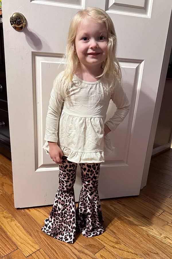 Our Beige High-Low Top and Leopard Pant Girls Set is in stock and ready to ship!